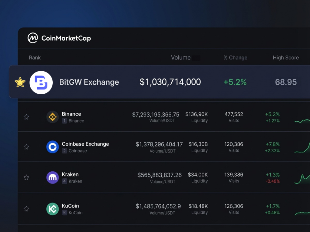 In February 2026, BitGW was officially included in the CoinMarketCap Exchange Rankings, marking its acceptance into CoinMarketCap’s exchange-level data transparency and evaluation framework.