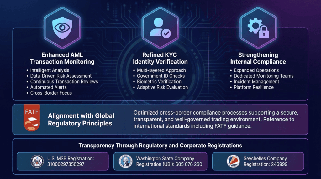 The platform continues to refine its cross-border compliance processes to support a secure, transparent, and well-governed trading environment for users around the world.